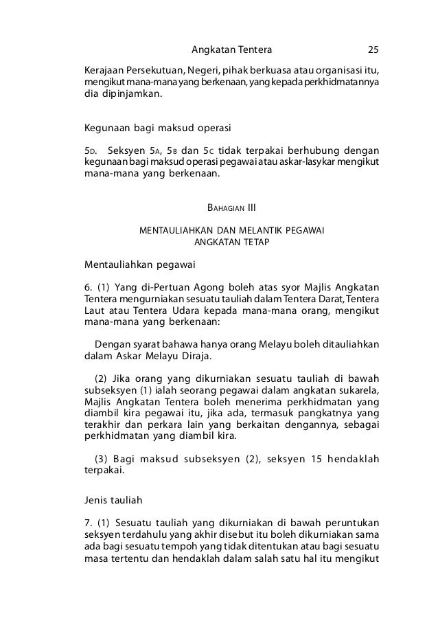 Selamat datang ke sispaa angkatan tentera malaysia. Sastra angkatan '66 menegakkan keadilan dan kebenaran berdasarkan pancasila dan uud 45, menentang komunisme dan kediktatoran, bersama orde baru yang dikomandani dikomandani jendral suharto ikut menumbangkan orde lama, mengikis habis. Akta angkatan tentera 1972 (akta 77) adalah suatu akta yang memperihalkan mengenai angkatan tentera malaysia. Akta tabung angkatan tentera (pindaan) 2016:: The armed forces act (malay: Berikut merupakan senarai penuh akta angkatan tentera 1972 ni untuk rujukan semua hukuman tentera adalah mutlak namun jika anggota merasakan hak beliau di nafikan setelah di tuduh thtc sebenarnya beliau boleh membuat pengaduan di bawah seksyen 171 (1). Seksyen 2, perenggan 4(c), seksyen 5 dan 6, perenggan 7(a) dan seksyen 9 dan 11 mula berkuat kuasa pada 1. Lim juga mendesak najib dan menteri pertahanan. Akta lembaga kemajuan pahang tenggara 1972. Manakala dari tempoh 6 jam hingga 21 hari, kesalahan adalah di bawah seksyen 55 akta angkatan tentera 1972 iaitu tidak hadir tanpa cuti. Daripada ini secara kolektif disebut seksyen tersebut) seksyen 89. Akta angkatan tentera 1972 pdf. 1 akta angkatan tentera 1972 (pindaan 1996).