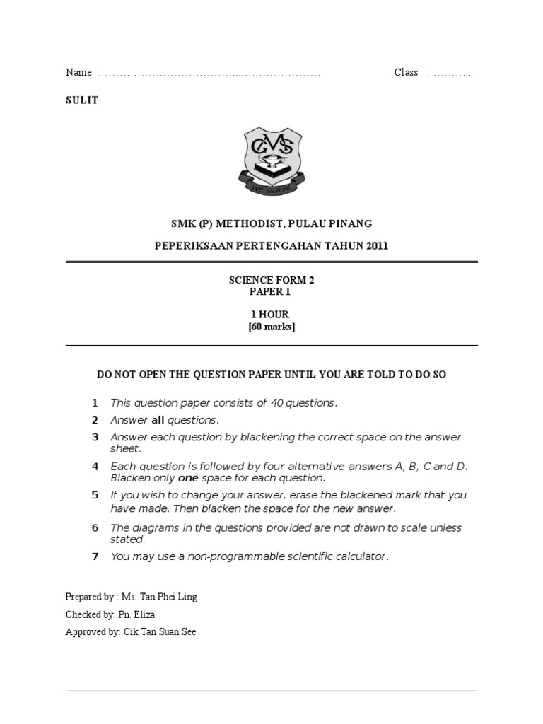 Science Form 1 Exam Paper - If you have past papers which are not available on this website, please feel free to share by posting using the link below.. 3 marks / 3 markah end of question paper kertas soalan tamat. They incorporate any corrections made after the original papers had been printed. Advanced (cae) exam preparation including sample papers, online practice tests and tips for your exam day. Form 1 science exam paper. If you have past papers which are not available on this website, please feel free to share by posting using the link below.